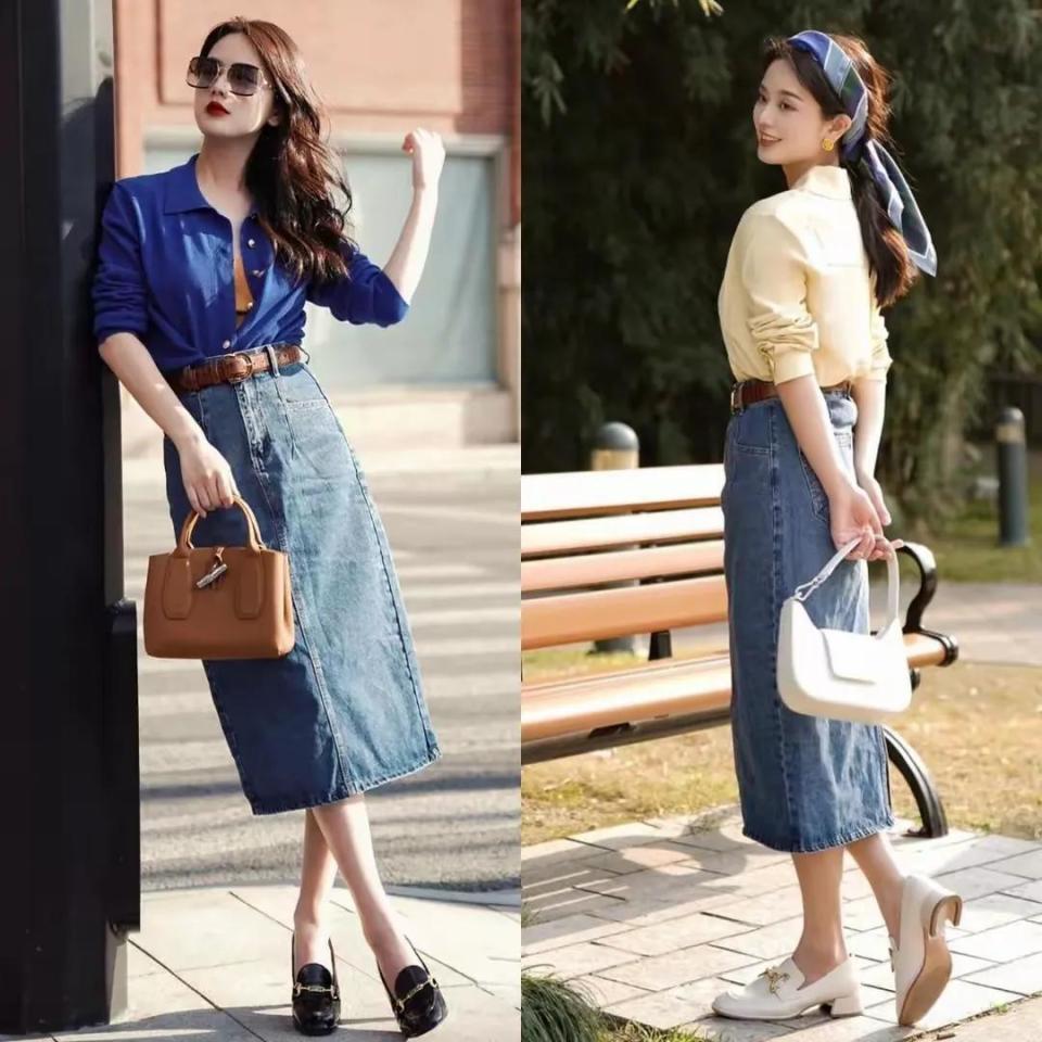 如果你是职场女性的话,我们径直秉承一对羊皮材质或者是牛皮材质的玄色乐福鞋,白色乐福鞋来搭配上牛仔直筒半身裙,这么的穿衣打扮现出来的成果不显豁得干练,何况又失业。