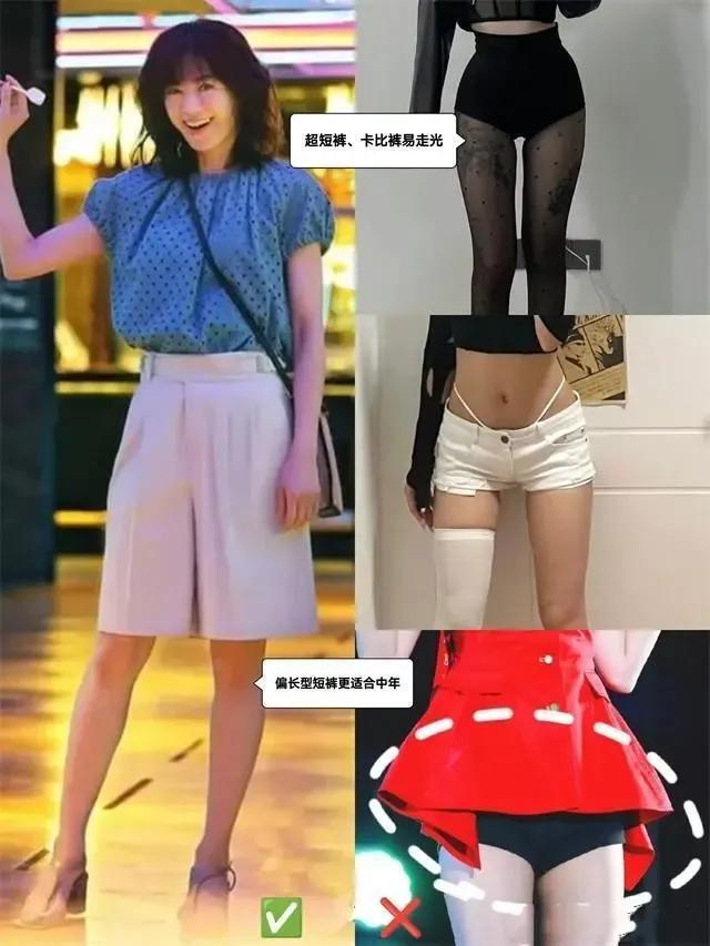 我们就来看底下右边的这三条短裤,如果是中年女性这么穿搭外出,那回头率完全超高,但并不是玩赏的眼神。是以我们秉承裙子也好,裤子也罢,一定要稳妥我方的年事暖和质,得当我方的才是最好的。