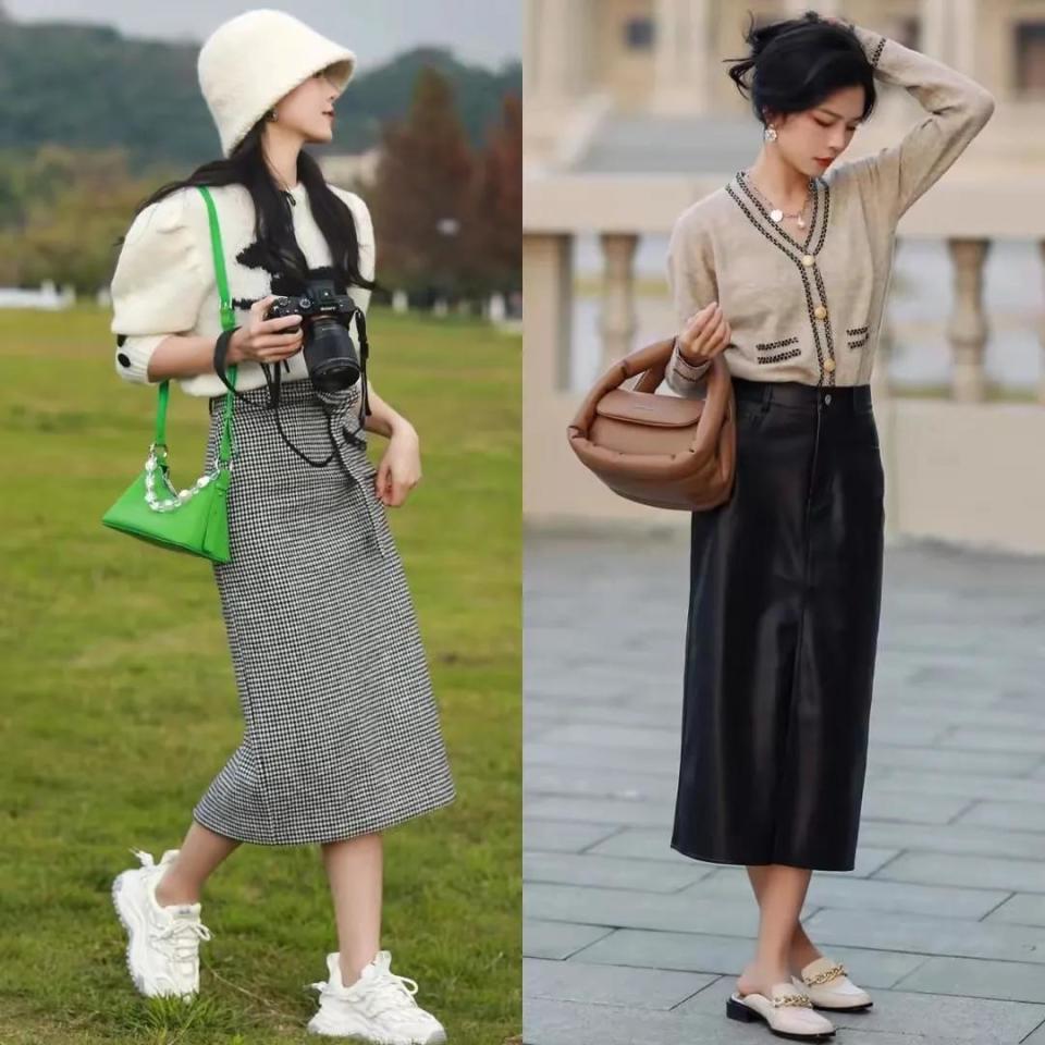 不外在秉承裙子版型的技巧亦然有一定的持重的,多选高腰收腰款,这么才调培植腰线,裙摆一定如果外扩的项目,比如说伞状半身裙a字半身裙,还有直筒半身裙,裙子的长度也要盖过膝盖到小腿肚的位置最好,这么就能达到一个遮肉显瘦的成果。