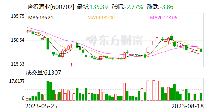 继水井坊和贵州茅台之后,8月18日晚,金徽酒、迎驾贡酒、舍得酒业(维权)三家白酒企业逼近发布了2023年半年报。