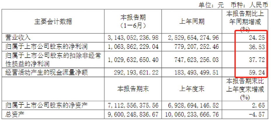 金徽酒半年报显现,公司1-6月已矣营业收入15.23亿元,同比增长24.25%;归母净利2.54亿元,同比增长20.06%,与一季报10%的增速比较彰着加速;规画性现款流净额3.53亿元,同比增长103.95%,规画性现款流靓丽,大幅好于净利润增速。