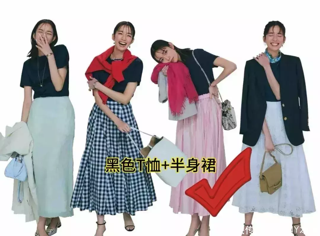 除了基础色白T恤除外,玄色省略灰色亦然很日常的配色!玄色T恤因为色系相比深,不错搭配一条项链看成点缀,素圈儿会更检朴随心。下半身歪邪搭配一条半身裙,就不错心仪上班的需求!