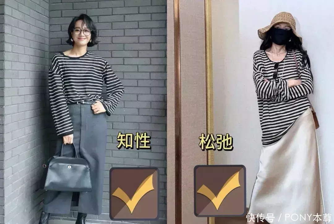 也不错如下图朱丹这么选拔长袖条纹衫,搭配一条灰色西装裙半身裙,带领玄色镜框眼镜,知性高知感!省略搭配一条缎面半身裙,温存感加倍,搭配一对芭蕾风平底鞋,摆脱切换到度假风!