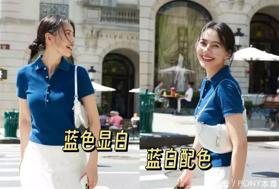 但念念要不同凡响的话,蓝色亦然安妥亚洲女孩儿的色调。高圆圆这款蓝色Polo衫,显白又好搭配,搭白色蕾丝半身裙,看起来充满了活力感!蓝白配色,在夏季省略初秋,回头率100%。