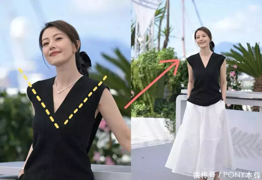 但关于平时东说念主来说,v领等于显脸小显脖子长的神器!高圆圆的这一件玄色v领马甲背心,险些等于温存感女神来临!